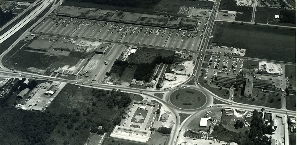 I seem to remember a flagpole in the center of the circle. Lots of shrubs and flowers. Always used the circle to get to the Pigstand. We all hated the new (I10) freeway. We used the freshly built freeway for drag racing...