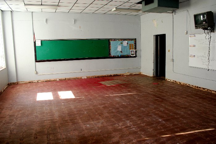 auditorium was destroyed when they lost the roof and everything got wet, as well as the rest of the school. As you can see in the pictures and those of you that have driven by French lately, they are holding class's in portable buildings.